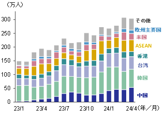 こちらの資料を見るとわかる通り、2023年から2024年にかけての1年だけでも、外国人観光客はかなり増加していますよね。